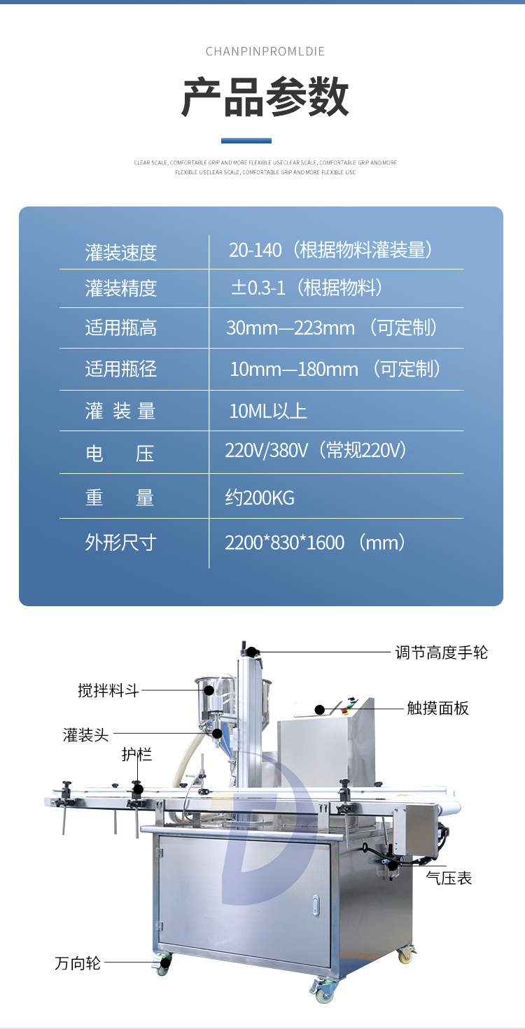 • 極快極簡極穩極廣極準 極快 灌裝速度2800瓶每小時 極簡 操作簡單 極穩24小時不停機 極廣啥啥都能灌 極準 200瓶誤差小于1克 設備突破傳統式灌裝方式,可根據瓶子高度調整灌 裝頭高度...