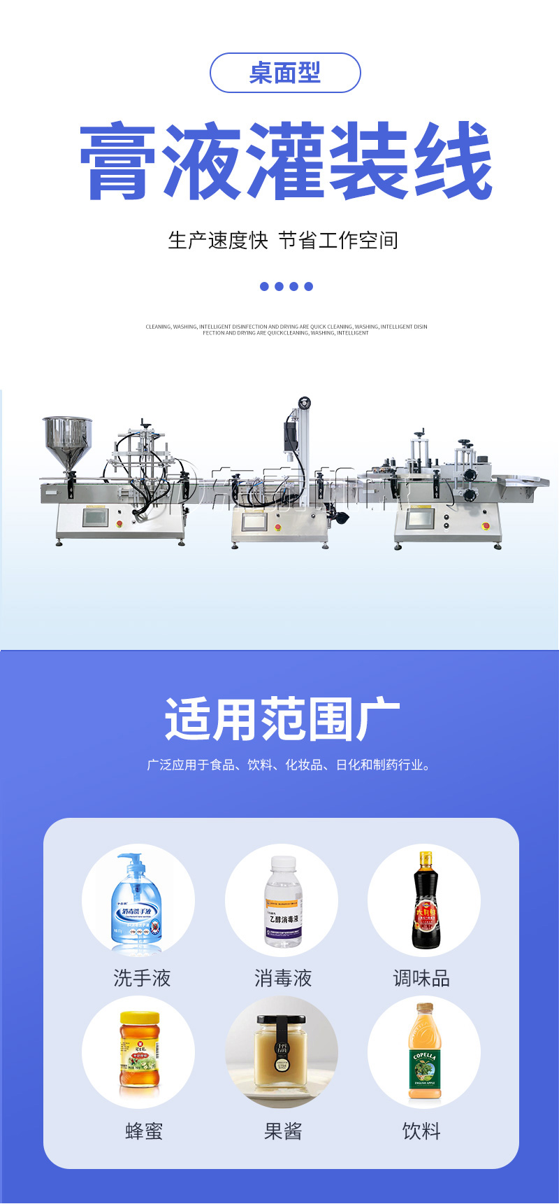 桌面型自動灌裝機(jī)是我公司的灌裝封口設(shè)備系列,適用于灌裝各種圓形,異型瓶和小瓶。 洗手液灌裝機(jī)主要適用于各種注射劑,消毒劑,口服液和糖漿,酒精和各種醫(yī)用液體的灌裝。 它廣泛用于食品,制藥,化學(xué)工業(yè)和科學(xué)研究領(lǐng)域。