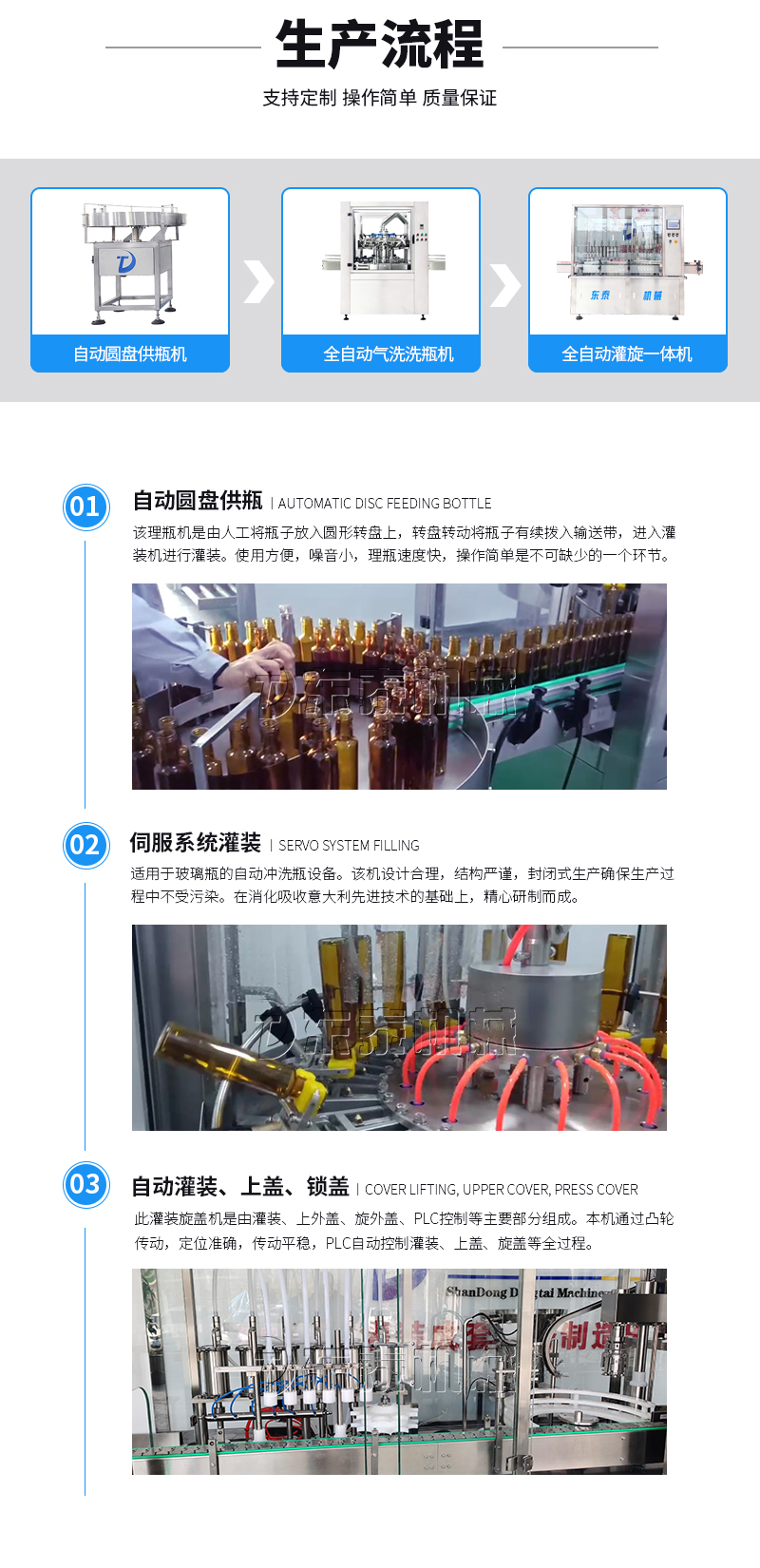 9、每個(gè)步驟有電眼跟蹤,且有瓶灌裝、旋蓋、無瓶不灌裝、不旋蓋。