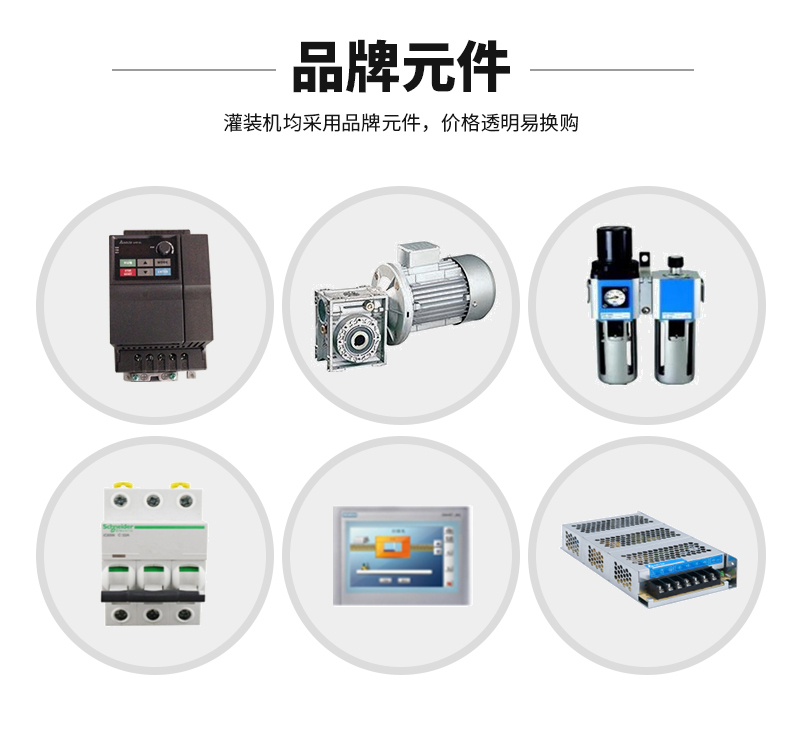 5、本灌裝旋蓋機(jī)主要電器元件均采用國(guó)外知名品牌。